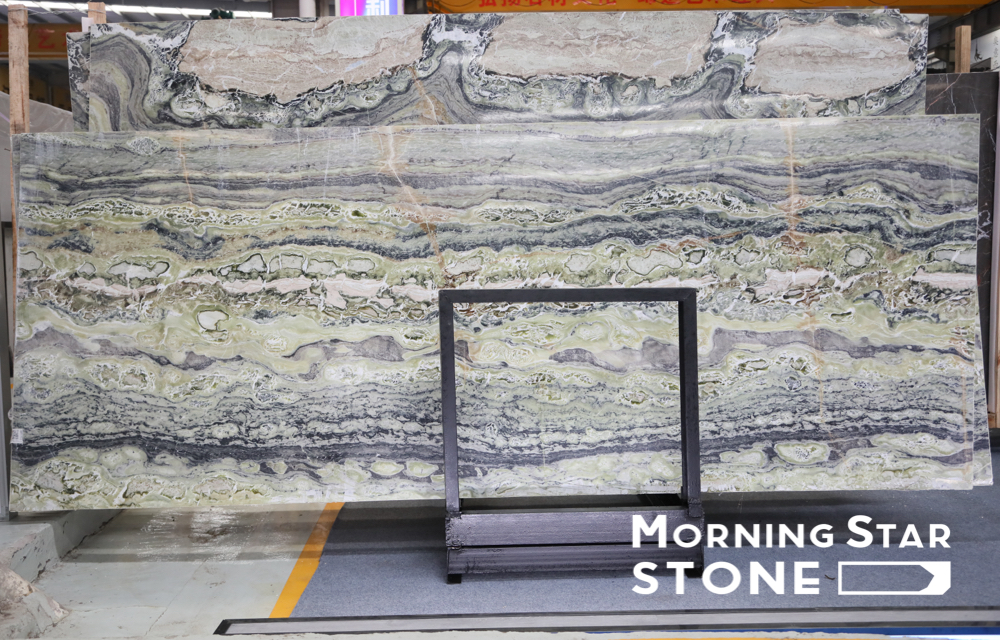 Dedalus Quartzite quarried from Brazil is a stone with powerful character unveiling its enduring charm and vitality through the unpredictable pattern and changing style. Dedalus Quartzite collects various shades of green color from cream green to lime green to the darkest shade of blackish green shifting in veins and patches. Some slabs will have one shade prevail, some slabs will have various hues distribute in balance. Dedalus Quartzite is versatile and flexible in fabrication and application, It brightens the space it incorporates with and links the space to Nature and Greenery.